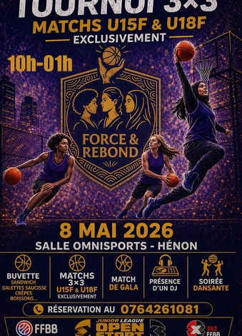 Ce tournoi 3×3 fĂ©minin, organisĂ© le 8 mai 2026 Ă la salle omnisports de HĂ©non, mettra Ă l’honneur les catĂ©gories U15 et U18 dans un Ă©vĂ©nement dynamique et engagĂ© 🏀✨.